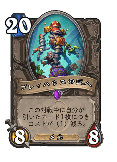 引いてきたプレイハウスの巨人は5or6ターン目に着地できると理想。しかし、ウォリアーの乱闘やハンターのシルヴァナスなどの全体除去のケアもしたいため、自身の盤面の強さと相手のハンドを考えてプレイをしよう。