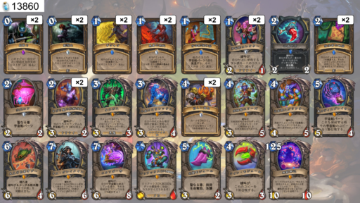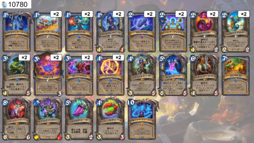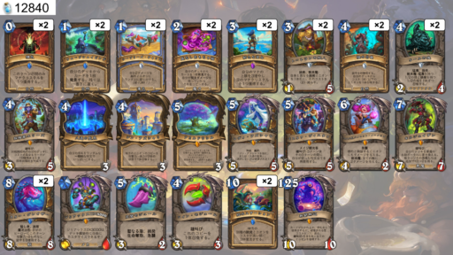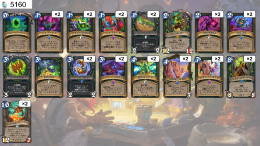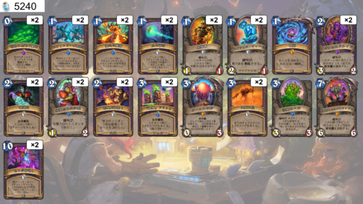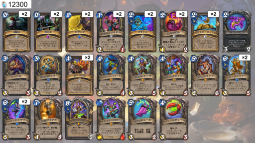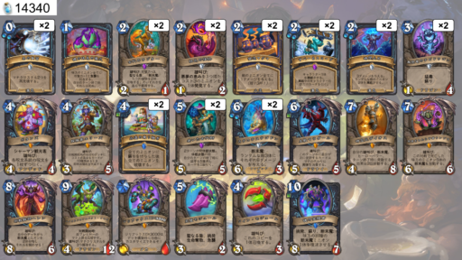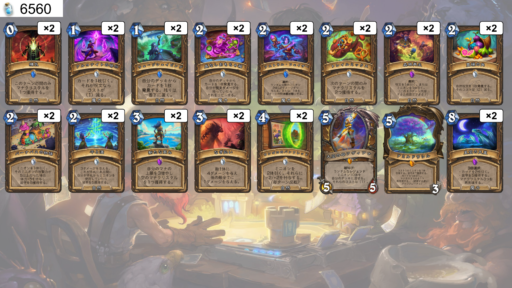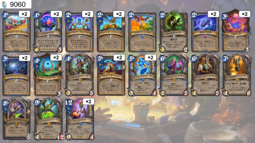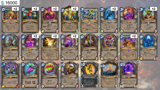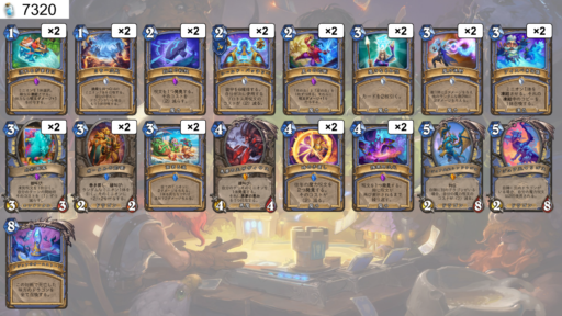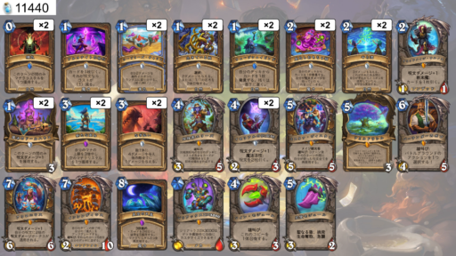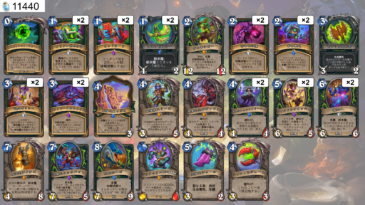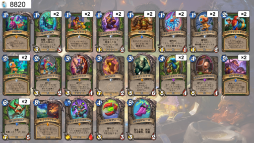 ・デッキの難易度は非常に高いためハースストーンの深淵を覗きたい人向け。このデッキを使いこなせたらハースストーンクリア。